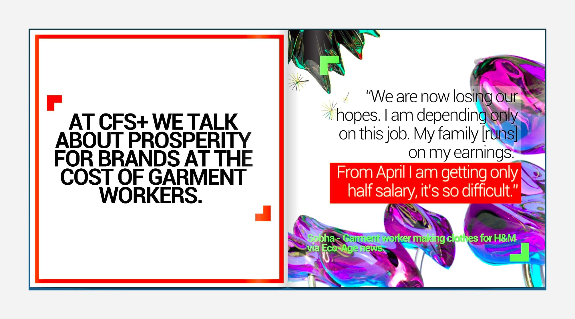 “We waren geschokt toen we erachter kwamen hoe merken zich gedroegen aan het begin van de pandemie: bestellingen annuleren, waarvan sommige al klaar waren, en weigerden ervoor te betalen. H&M heeft zich ertoe verbonden alle bestellingen te betalen. Het is echter verre van voldoende om voor die bestellingen te betalen. We ontvangen nog steeds meldingen van schendingen van rechten van kledingarbeisters over de hele wereld. Merken waaronder H&M tonen absoluut geen blijk van solidariteit met de arbeiders die het mogelijk hebben gemaakt dat zij jarenlang forse winsten maakten. In feite is het tegenovergestelde waar. Er is geen aarzeling om de ernstigste gevolgen van de crisis door te drukken naar de arbeiders aan de onderkant van de toeleveringsketen, terwijl mensen als [H&M CEO] Helena Helmersson op modetoppen ronddobberen.”
