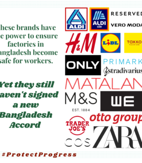 25 augustus 2021 Bangladesh-akkoord: SKC verwelkomt nieuw bindende veiligheidsovereenkomst voor kledingarbeidsters Getuigen-ondertekenaars van het Bangladesh-akkoord waaronder Schone Kleren Campagne verwelkomen de overeenstemming die kledingmerken en vakbonden vandaag hebben bereikt over een nieuw internationaal akkoord voor gezondheid […] Lees meer