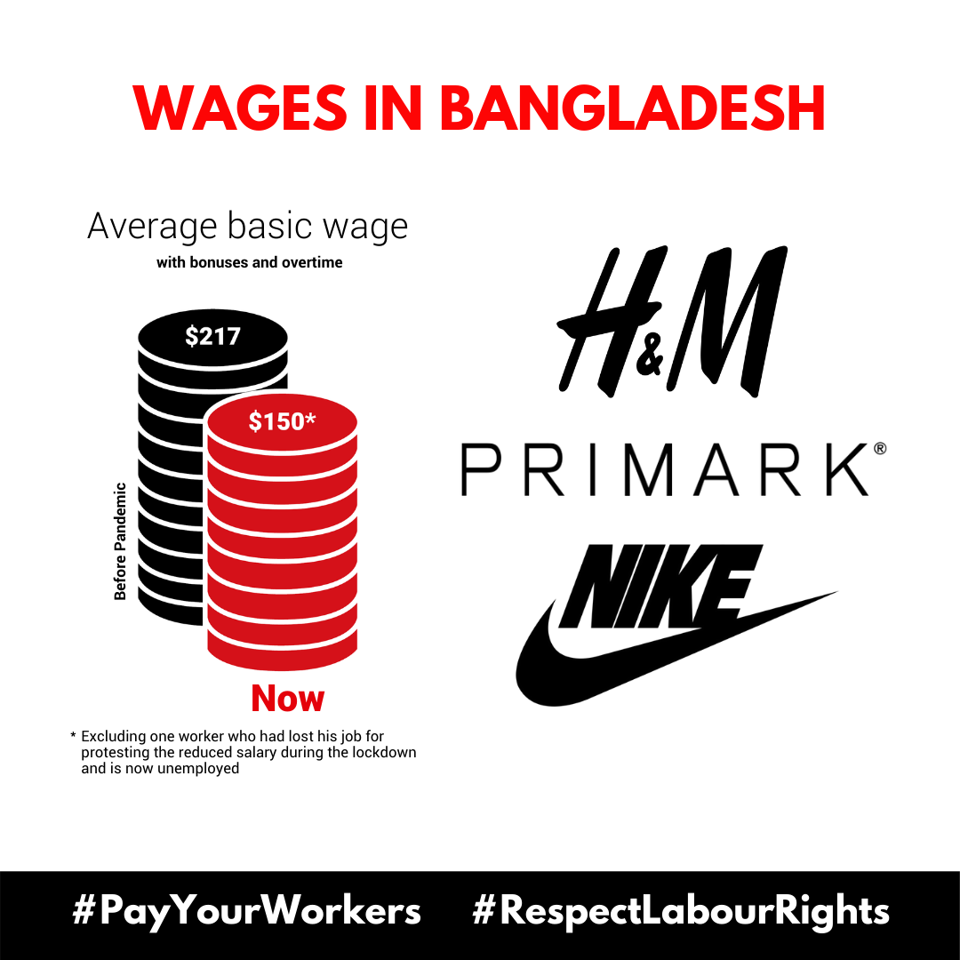 Door middel van een nieuw onderzoeksrapport maakt Schone Kleren Campagne duidelijk dat H&M, Nike en Primark tijdens de COVID-19-pandemie fabrieksarbeiders in hun toeleveringsketens in Bangladesh, Cambodja en Indonesië tot economische wanhoop drijven. Uit interviews met 49 kledingarbeiders blijkt dat de door het coronavirus veroorzaakte crisis een verwoestende impact blijft hebben op de lonen, arbeidsomstandigheden en arbeidsrechten van kledingarbeiders.
