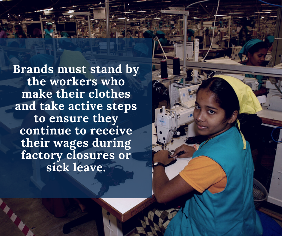 Het is bijna eind april en in veel productieanden voelen kledingarbeidsters zich gedwongen om te gaan demonstreren om hun achterstallige loon voor maart op te eisen voor het werk dat zij hebben gedaan voordat zij werden ontslagen. Als merken niet betalen voor de kleding die ze hebben besteld, kunnen fabrieken hun arbeiders niet betalen.