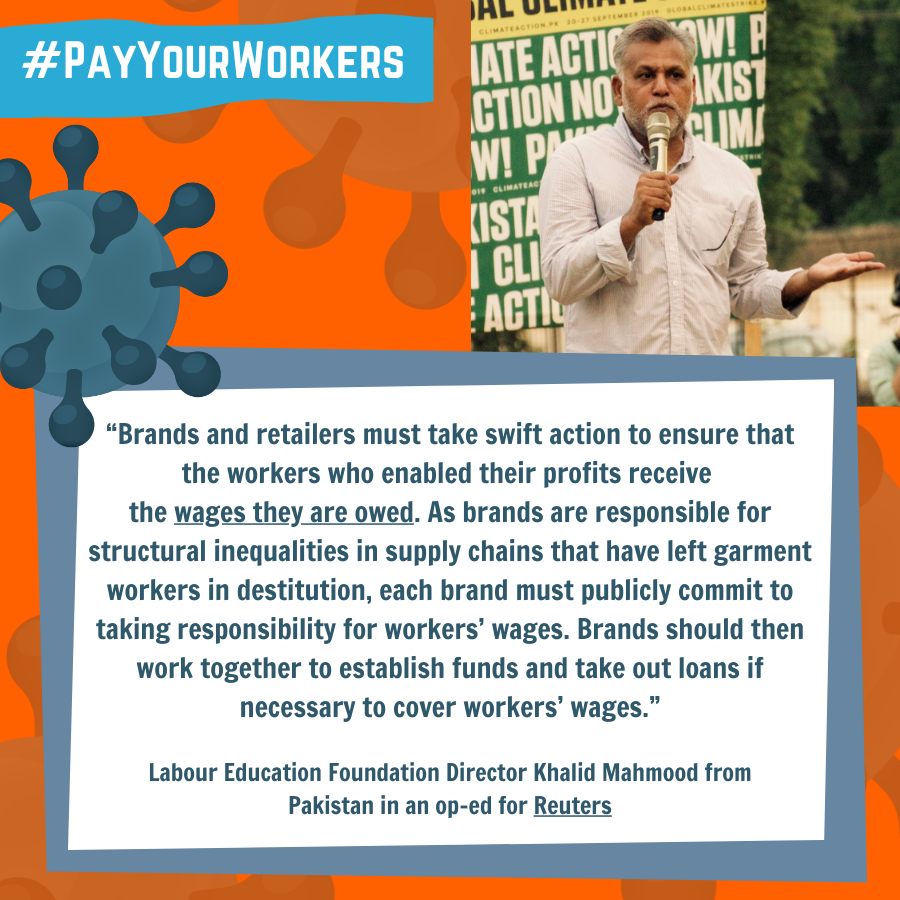 Vanwege hun buitensporige macht in wereldwijde toeleveringsketens kunnen grote merken en retailers de voorwaarden en prijzen bepalen in de fabrieken waarin ze produceren, en in feite fungeren als belangrijkste werkgevers. Echter, hun maatregelen om tijdens de pandemie bedrijfsrisico’s te verminderen hebben een situatie gecreëerd waarin de arbeiders de prijs voor deze crisis betalen.