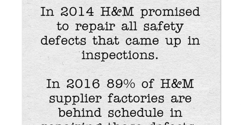 De vorderingen van verbeteringen in 32 van de belangrijkste toeleveranciers van H&M op het gebied van brand- en bouwveiligheid zijn tegen het licht gehouden. Hieruit blijkt dat de hoognodige verbouwingen in deze kledingfabrieken ernstig achterlopen. Hierdoor riskeren tienduizenden kledingarbeidsters die H&M kleding maken nog steeds dagelijks hun leven. Schone Kleren Campagne roept H&M daarom op haast te maken met de maatregelen die nodig zijn om de kledingarbeiders in Bangladesh te beschermen.