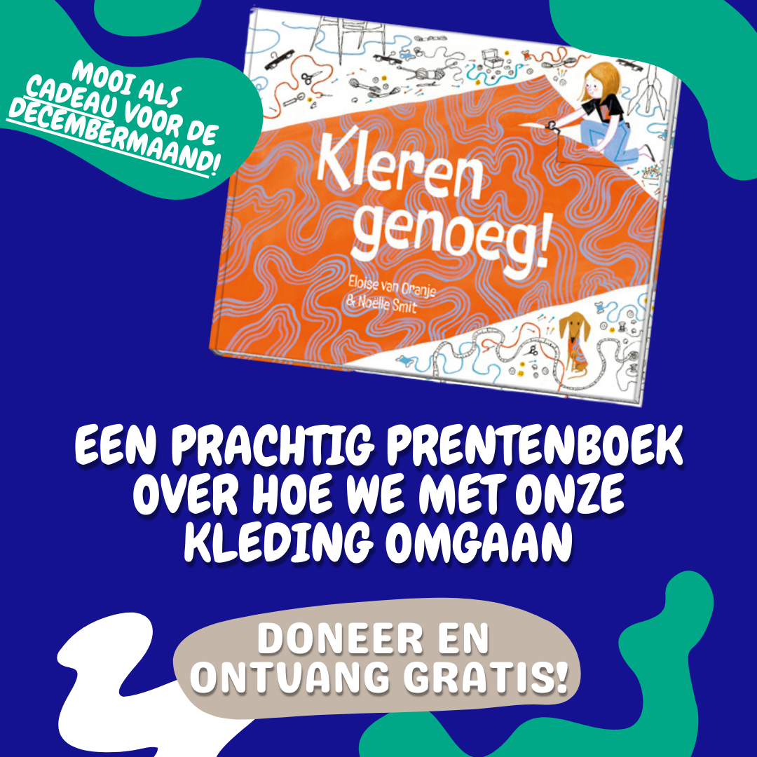 We hebben kleren genoeg, maar weten vaak nog steeds niet wat we aan moeten trekken. En dus blijven we maar kopen. In het prentenboek Kleren Genoeg! van Eloise van Oranje en Noëlle Smit worden kinderen meegenomen in wat de gevolgen zijn van hoe we met onze kleding omgaan. Ontvang het boek nu gratis bij een donatie vanaf 25 euro of als je vaste donateur wordt.