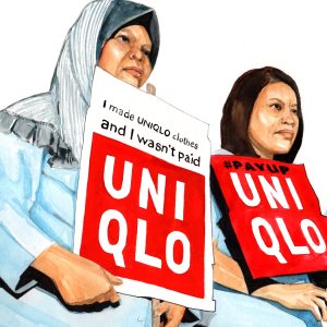In Jakarta, Indonesië laat het Japanse kledingmerk Uniqlo al jarenlang tweeduizend kledingarbeiders aan hun lot over. De arbeiders hebben recht op ontslagvergoeding, maar hebben dit nooit betaald gekregen.